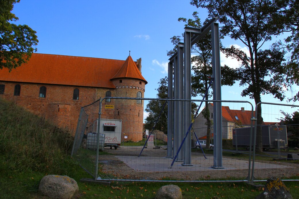 Her er en billedserie fra opstilling af Prøvemuren ved Nyborg Slot.